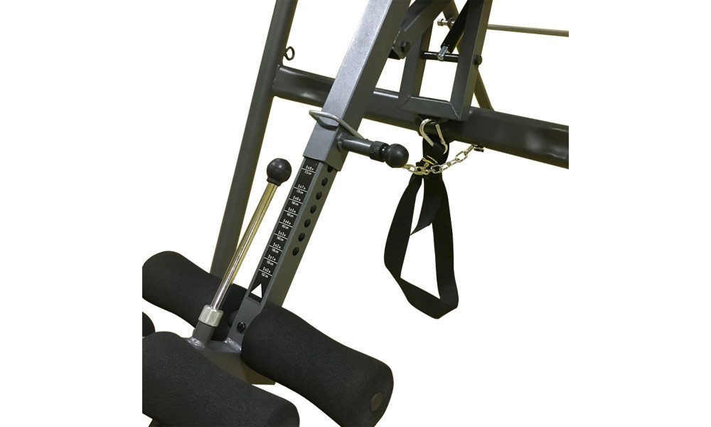 На данной модели инверсионного стола предусмотрен выбор режима инверсии (с помощью ремня и стержня): легкий (угол до 22 гр), средний (угол от 22 до 55 гр), профессиональный (от 55 гр).