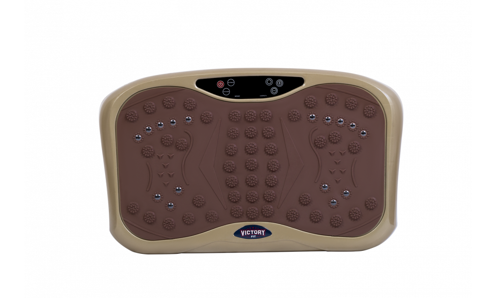 Виброплатформа VictoryFit VF-M130 - базовая модель в линейке, выполнена из ударопрочного пластика, благодаря чему максимальный вес пользователя может достигать 120 кг. В данной модели, на выбор, предусмотрено изменение скоростного режима: от 1-99, амплитуда вибрации варьируется от 0-10 мм. Для удобства платформа имеет пульт дистанционного управления. Максимальное время непрерывной работы ограничено десятью минутами, но по эффекту это время вполне сопоставимо с часовой тренировкой в фитнес-клубе. Работа тренажера основана на вибрациях, стимулирующих мышцы к быстрому сокращению и расслаблению на уровне рефлексов, в связи с этим занятия не вызывают сильную усталость и утомляемость. Виброплатформа VictoryFit VF-M130 поможет: